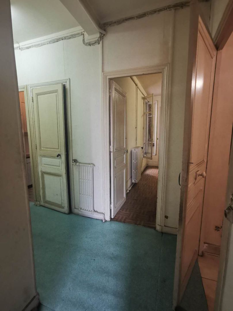 Petit appartement de 3 pièces traversant se composant comme suit: une entrée avec un très grand placrd, à votre gauche se trouve une cuisine, puis les wc, en face de la porte d'entrée une grande salle d'eau avec un celier sur le côté. Une grande chambre se trouve à droite de la salle d'eau. Le séjour se trouve à gauche de la salle d'eau et la secomnde chambre se trouvant au fond du séjour. Beaucoup de potentiel, le charme de l'ancien avec les moulures au plafonds et une cheminé. Les charges sont de 360/ trimestre. Taxe foncière 1110. Idéal pour un premier achat ou un investissement, prévoyer des travaux.