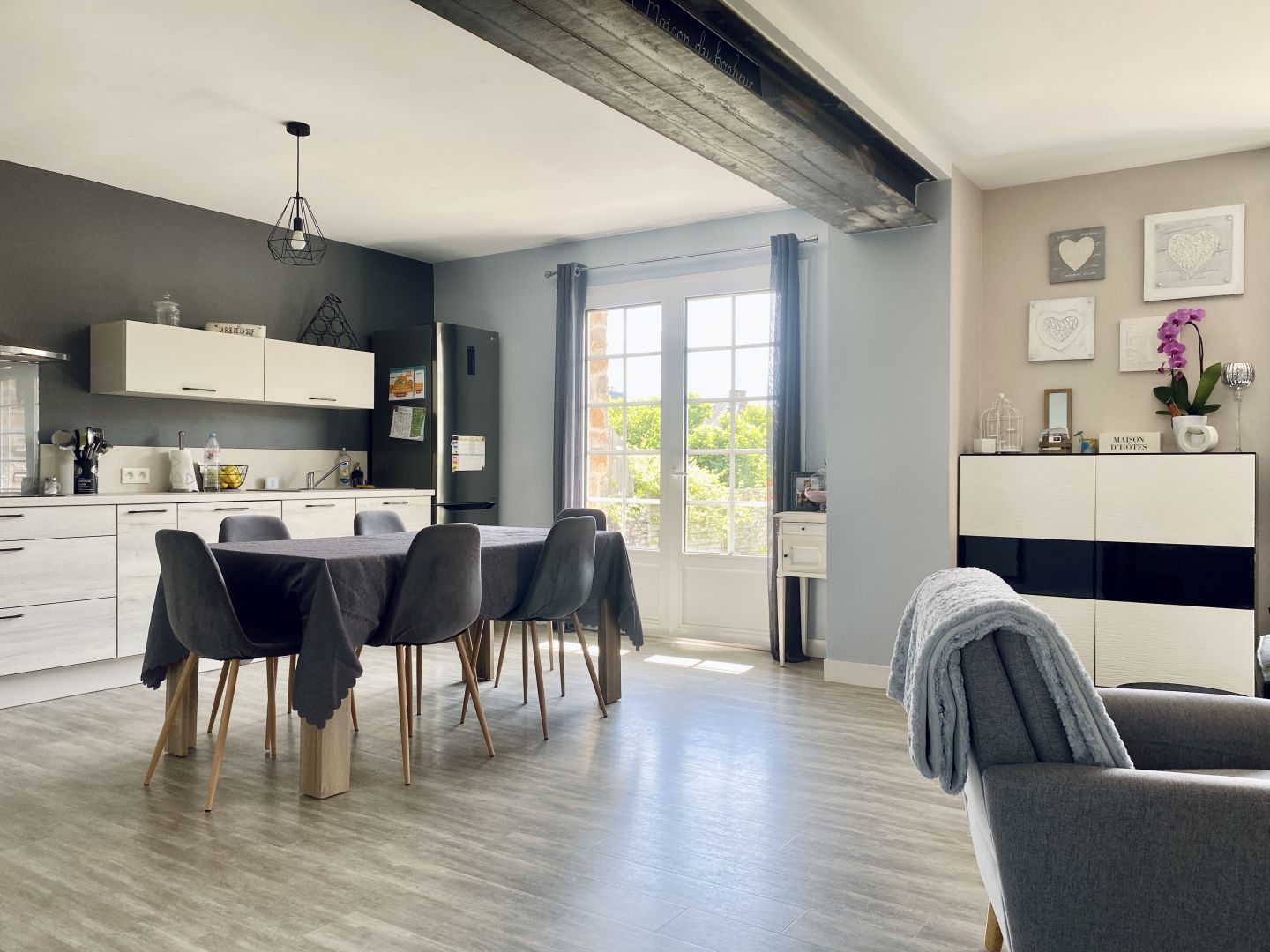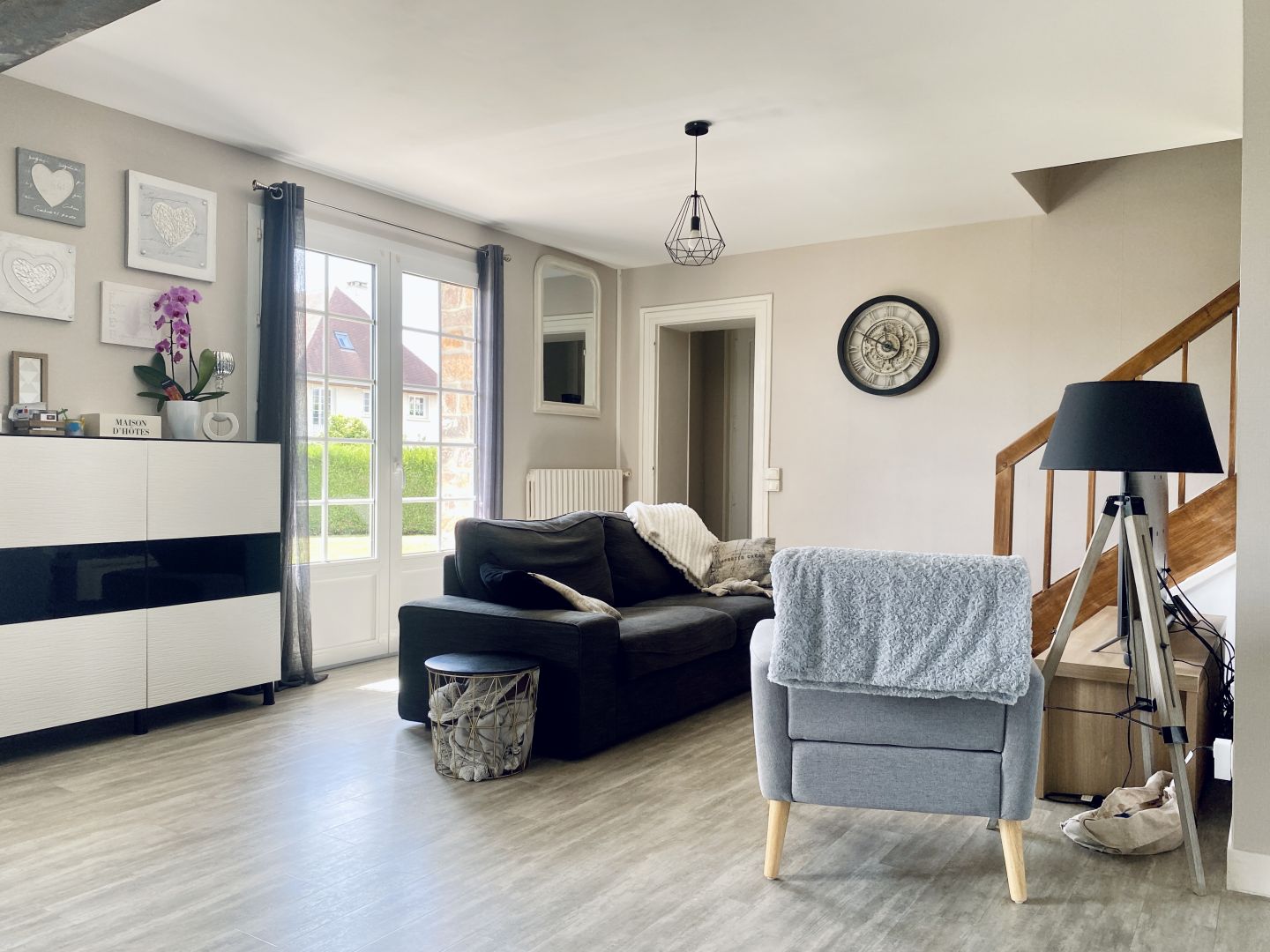 Sur la commune de Torigni-les-Villes, à deux pas des commerces, des écoles et des promenades des étangs, découvrez cette jolie maison dans un quartier calme entièrement rénovée avec gout et prestations de qualité (Pompe à chaleur, isolation, double vitrage...). Cette maison mitoyenne d'un côté développe environ 117m2 habitables. Entièrement réagencée et décloisonnée la maison nous offre aujourd'hui un séjour/salon avec cuisine ouverte de 40m2. Le rez-de-chaussée offre également un coin bureau, une salle de bain, un wc et une arrière cuisine. À l'étage, un pallier desservant 3 chambres et une pièce aménagée à usage de quatrième chambre. La maison vous fait profiter également d'une cave, d'un garage de 30m2, et d'une petite dépendance. Côté extérieur, la parcelle de 625m2 offre une terrasse bien exposée et un jardin entièrement clos et arboré. À savoir que les deux grandes fenêtres des chambres situées à l'étage sont en cours de remplacement, les finitions tels que les tapisseries/peintures seront terminées pour la vente. VISITE VIRTUELLE DISPONIBLE SUR NOTRE SITE INTERNET.