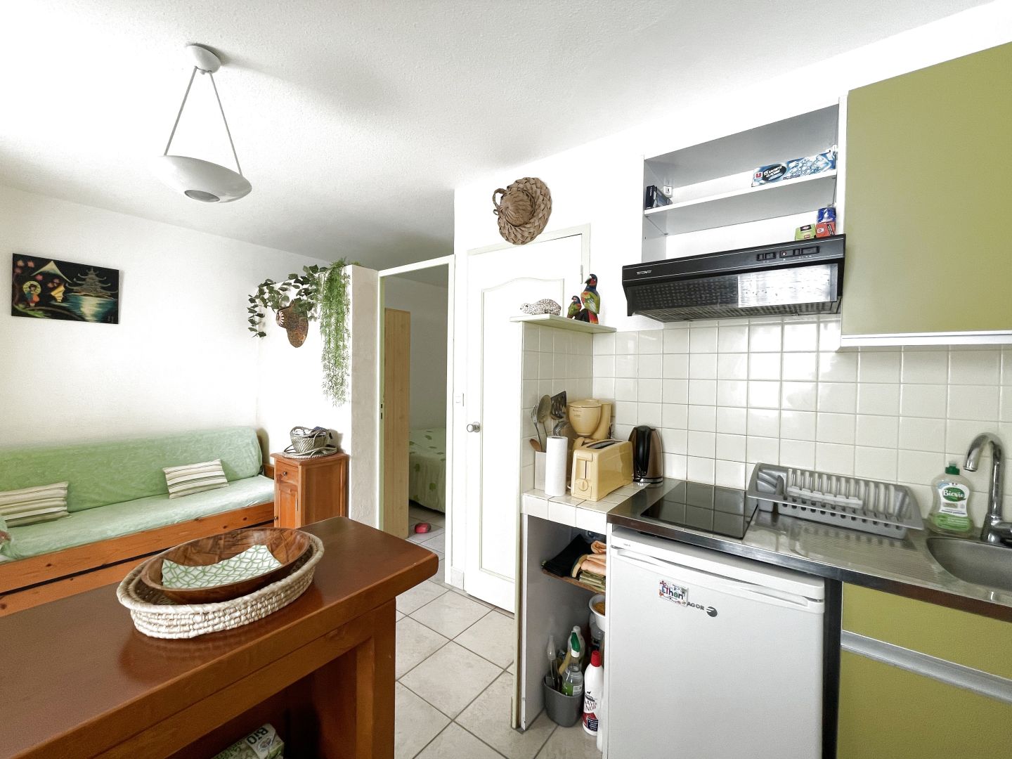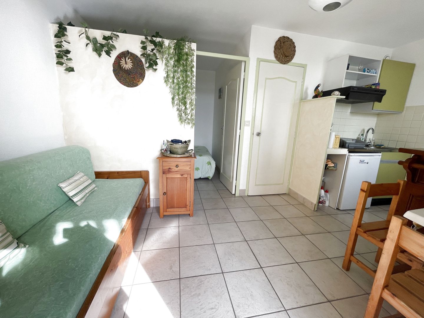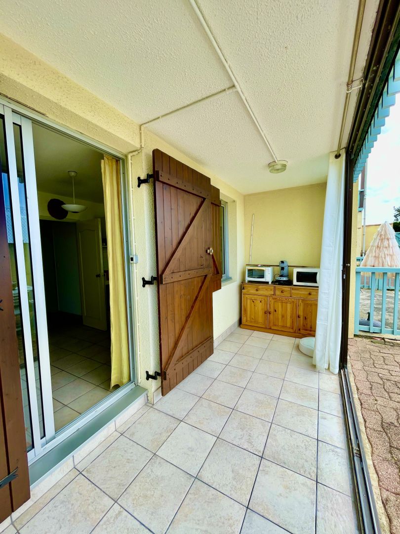 SOULAC/ MER Proximité Centre ville et plage , Appartement de plain pied d'environ 31 m2 composé d'une entrée ouverte sur une séjour avec kitchenette équipée. Salle d'eau avec wc. Un espace nuit avec cloison pour plus d'intimité. Pour l'intersaison une loggia avec baies vitrées ouverte sur une grande terrasse ensoleillée. Sortie directe pour accés à la plage. En sus un parking exterieur et une place dans le parking couvert. Faibles charges de copropriété (environ 55 euros/mois). POINTS FORTS : Appartement de plain pied vendu meublé / Espace nuit semi fermé /aucun travaux à prévoir / Terrasse / Parking couvert.