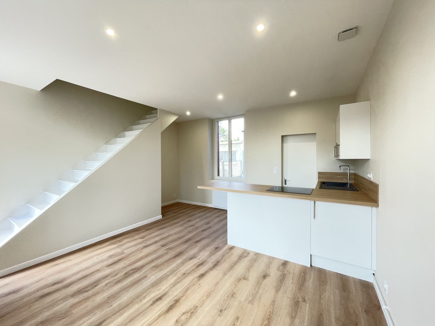 Orléans Madeleine, maison à louer T2 bis de 46 m² sur deux niveaux, entièrement rénovée, avec jardin. Elle comprend au rez-de-chaussée un séjour avec cuisine ouverte aménagée/équipée. Et à l'étage, deux chambres en enfilage et une salle d'eau avec WC. Cave, jardin et stationnement possible dans la cour. Loyer mensuel : 790 € sans charges. Honoraires charge locataire : 506 €. Dépôt de garantie : 790 €. DPE : E. Disponible 15 Juillet Réf. : 4026. Agence Côté Particuliers Orléans