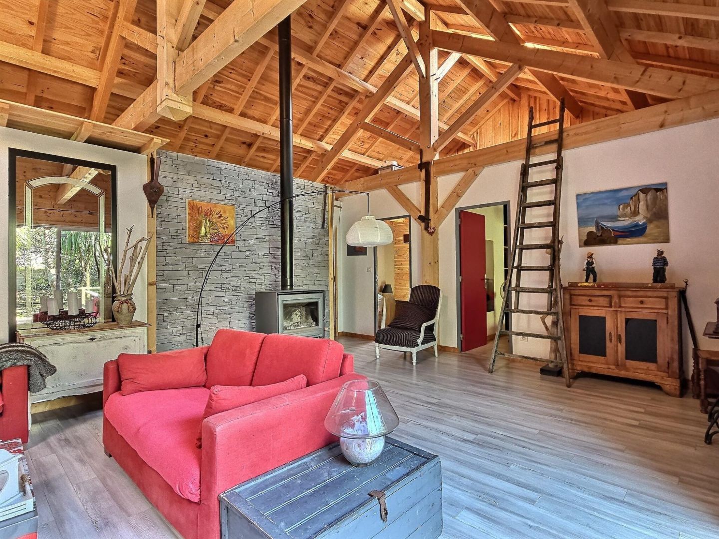 Seulement chez Cà”TÉ PARTICULIERS, Le Verdon-sur-mer à 2 min du centre et des commerces, et 5 min de la plage de la Chambrette. Charmante VILLA en ossature bois bâtie en 2012 développant 100 m². La porte d'entrée dessert une magnifique pièce de vie de 50m² comprenant séjour et cuisine américaine entièrement équipée. Vous apprécierez les généreux volumes de cette pièce, et la vue directe sur l'âme de cette maison: sa charpente traditionnelle. Pour la partie nuit , 3 chambres indépendantes équipées de placards de rangement. Une mezzanine peut également accueillir un couchage d'appoint . Belle terrasse en bois pour profiter des repas en plein air, ouverte sur un magnifique terrain arboré et végétalisé. En sus un garage de 15 m². Véritable coup de coeur !!!!! Aucun travaux à prévoir.