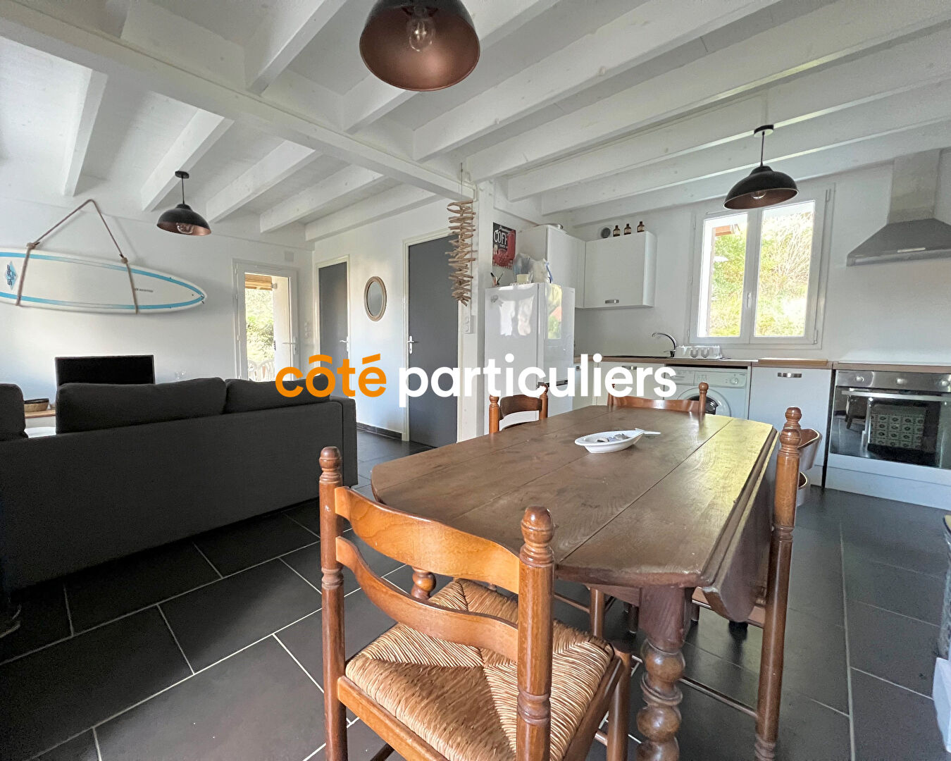 Ce duplex de 64 m², entièrement rénové en 2021, est idéalement situé en plein coeur de Mimizan, à quelques pas des commerces et services, et à seulement 6 km des plages. Son agencement fonctionnel et ses équipements modernes en font un lieu de vie agréable. Au rez-de-chaussée, vous profiterez d'une pièce de vie lumineuse ouverte sur une cuisine équipée, d'une salle d'eau contemporaine et d'un WC indépendant. L'étage dispose d'un palier donnant sur deux chambres ainsi qu'un cellier. En extérieur, une belle terrasse couverte vous invite à profiter des beaux jours, tandis qu'un cabanon offre un espace de stockage supplémentaire.
