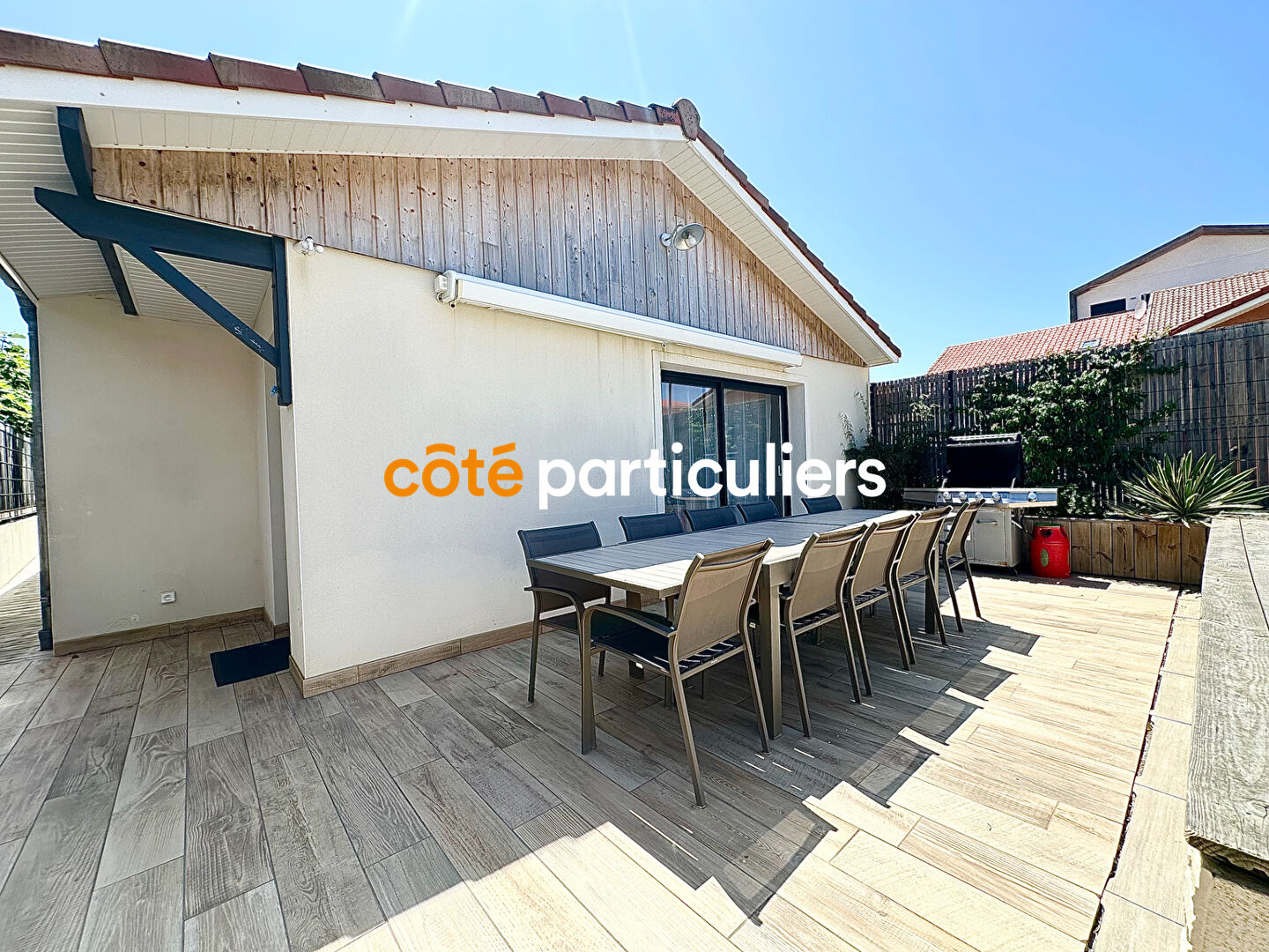 Exceptionnelle villa contemporaine au coeur de Mimizan Plage, à seulement 100 mètres de l'océan. Offrant un emplacement rare en première ligne, cette élégante propriété se niche dans un environnement paisible et privilégié, à quelques pas des plages, tout en bénéficiant d'un terrain paysagé conçu pour un entretien minimal. Dès l'entrée, la villa séduit par ses volumes généreux, sa luminosité traversante et ses finitions soignées. Le vaste séjour, baigné de lumière naturelle, s'ouvre harmonieusement sur une cuisine contemporaine, entièrement équipée et pensée pour recevoir dans un esprit de convivialité et de confort absolu. La partie nuit se compose de deux chambres avec rangements, ainsi qu'une suite parentale disposant de son propre point d'eau, offrant calme et intimité à vos hôtes ou à votre famille. Une salle d'eau moderne et des toilettes indépendantes avec lave-mains complètent les prestations intérieures. Maison équipée d'une climatisation réversible ainsi que de panneaux photovoltaïques . À l'extérieur, une première terrasse en carrelage, équipée d'un store électrique, invite à la détente sous le soleil landais. Une seconde terrasse en bois, idéalement exposée plein sud, abrite une superbe piscine, véritable havre de paix. La villa dispose également d'une place de stationnement privative, d'un espace de rangement pratique pour les vélos ou équipements de plage, ainsi que d'une dépendance de 16 m², entièrement aménagée et climatisée. Celle-ci comprend un coin nuit, une salle de bain et des toilettes, parfait pour accueillir en toute autonomie. Une propriété rare, alliant élégance, confort et fonctionnalité, offrant un fort potentiel locatif saisonnier dans un secteur très recherché. Une opportunité unique pour les amateurs de biens d'exception en bord de mer.