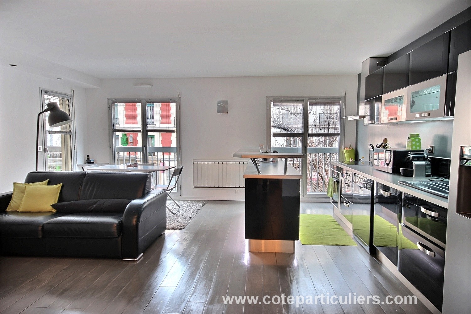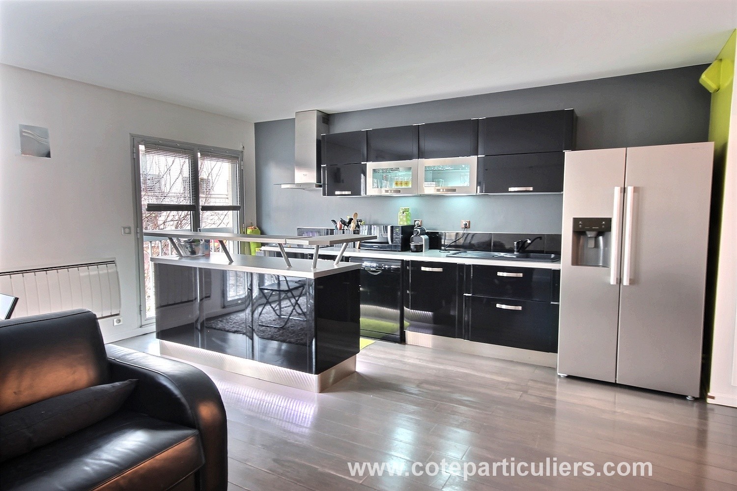 A 2 pas du métro Corentin Celton, dans une résidence sécurisée des années 80, spacieux 2 pièces de 56 m², entièrement rénové avec goût, comprenant un séjour de 30 m² donnant sur un large balcon-loggia, une cuisine américaine moderne entièrement équipée ( réfrigérateur américain, plaques électriques, lave vaisselle...),une grande chambre, une salle de bain avec baignoire et WC. Nombreux rangements. Chauffage individuel électrique, double vitrage et volets roulants. Cave, local à poussette et vélos, place de parking en sous sol. Aucun travaux à prévoir, proche toutes commodités ! Disponibilité juin 2019. Honoraires à charge acquéreur inclus dans le prix de vente : 10 000 euros soit 2,08 % TTC (Prix 480 000 euros hors honoraires). Charges courantes de copropriété : 1950,44 euros par an - Copropriété de 62 lots principaux. Pas de procédure en cours.